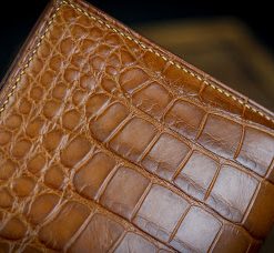 This fully hand-stitched bifold will be made from Brown American Alligator. All edges will be painted to match the leather (or burnished in the case of the natural leather). The edges will also be creased with fine, detailed lines. Hand stitching makes this men’s alligator wallet more durable.