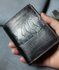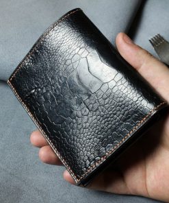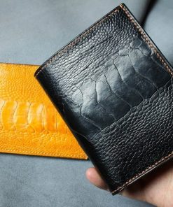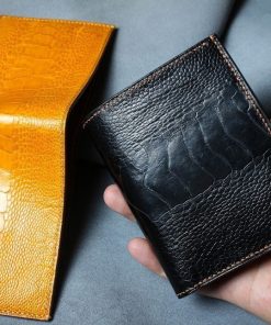 Made from high quality ostrich leg skin with Italian cowhide interior. Hand stitching makes the product more durable.