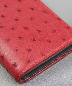 Made from high quality ostrich skin with Italian cowhide interior. Hand stitching makes the product more durable.
