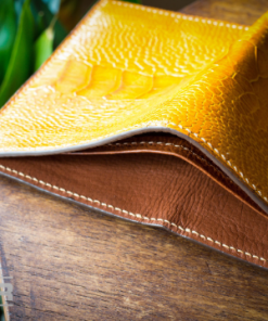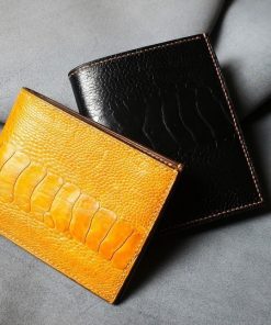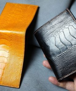 Made from high quality ostrich leg skin with Italian cowhide interior. Hand stitching makes the product more durable.