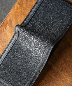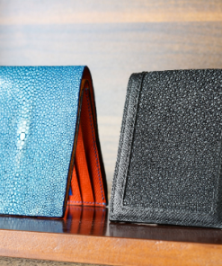 Made from high quality stingray skin with Epsom leather interior. Hand stitching makes the product more durable.